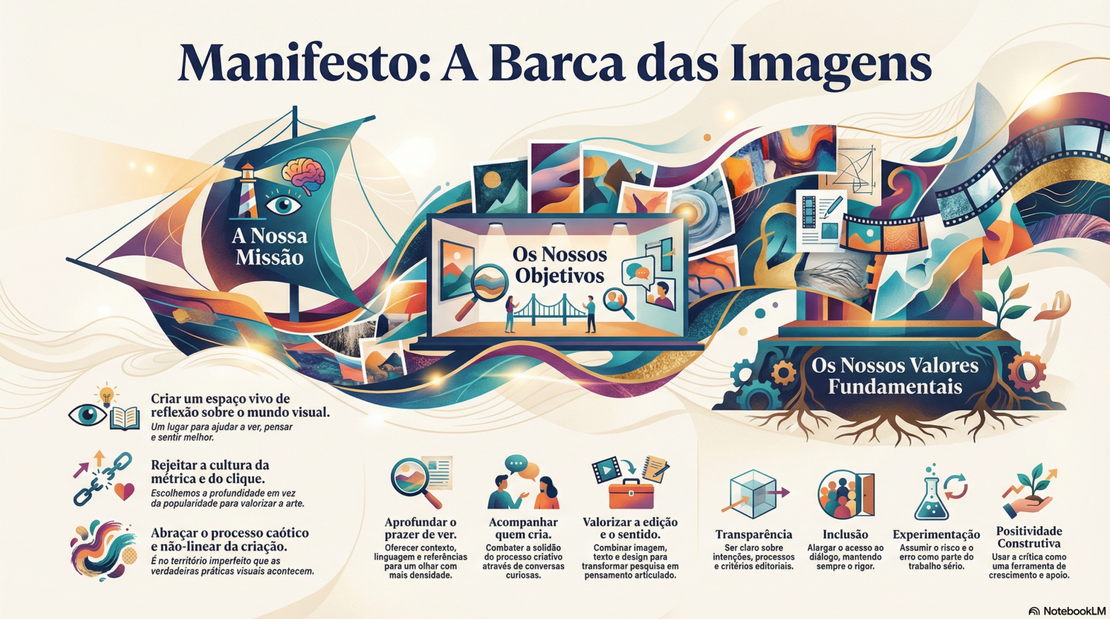 É neste contexto que A Barca surge como um ato de resistência. Mais do que uma plataforma, propõe-se a ser um espaço de reflexão partilhada sobre o mundo visual, com o objetivo de nos ajudar a “ver melhor, pensar melhor e sentir melhor”. Combate a lógica do clique e a solidão que tantas vezes acompanha a prática artística, oferecendo um mapa para navegar as águas turbulentas da cultura contemporânea. As suas premissas contêm lições valiosas para qualquer pessoa interessada em criar, ver e pensar com mais intenção.
